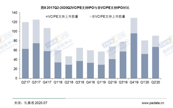 2020年第二季度,中企境内外IPO总数量有87家,环比上升7.4%,同比增长27.9%。