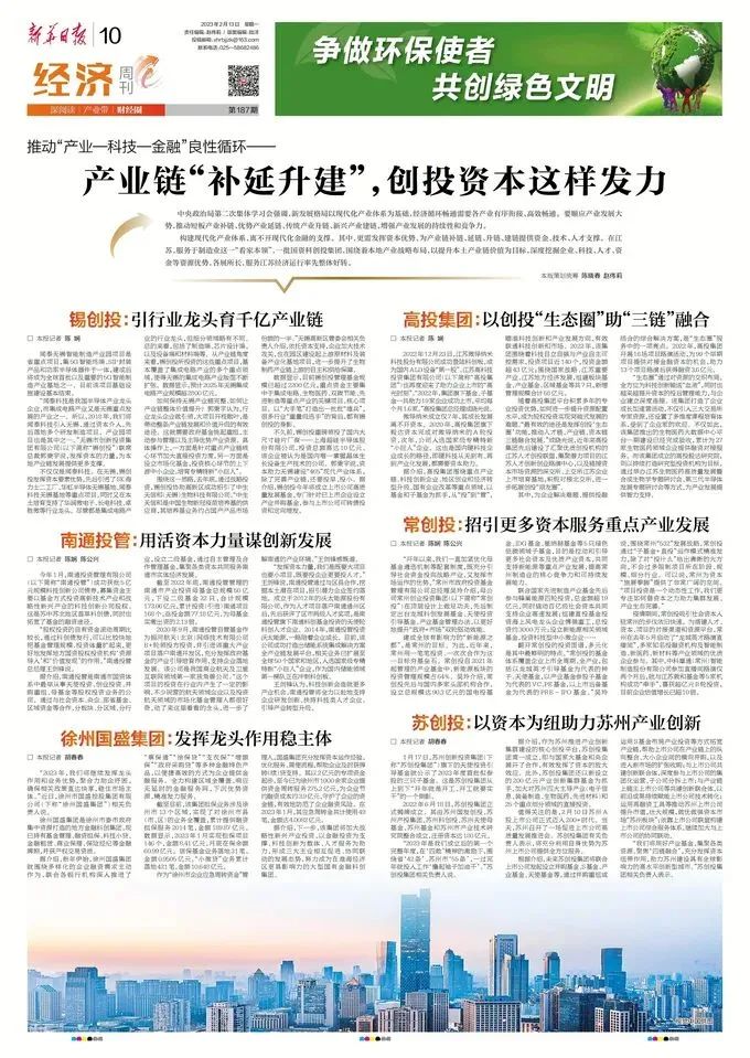 构建现代化产业体系,离不开现代化金融的支撑。其中,更需发挥资本优势,为产业链补链、延链、升链、建链提供资金、技术、人才支撑。在江苏,服务于制造业这一“看家本领”,协会会长单位高投集团、副会长单位锡创投等多家国资创投集团会员单位,围绕着本地产业战略布局,以提升本土产业链价值为目标,深度挖掘企业、科技、人才、资金等资源优势,各展所长,服务江苏经济运行率先整体好转。