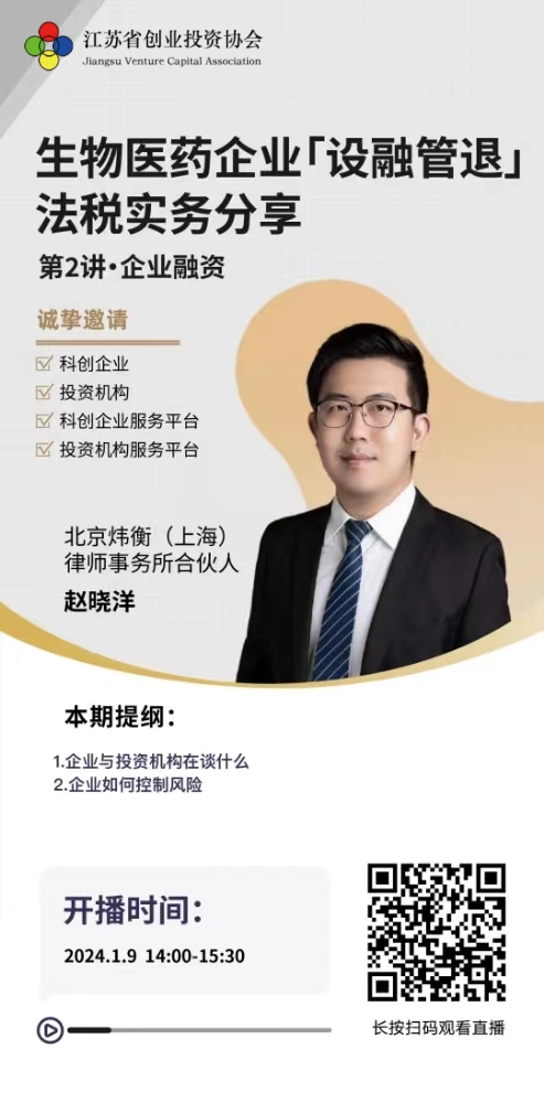 1月9日丨生物医药企业「设融管退」法税实务分享·第2讲-企业融资